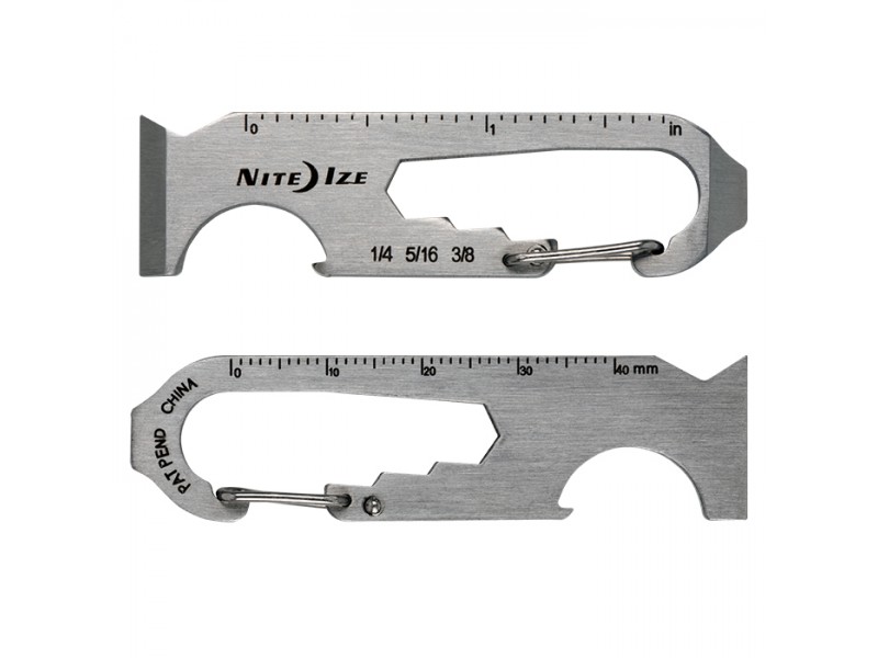 Карманный инструмент NiteIze DoohicKey 6x, сталь. Легкий и компактный размер данного мультиинструмента позволит вам практически всегда иметь под рукой нужное приспособление. Изготовленный из прочной нержавеющей стали Nite Ize DoohicKey 6x - это мультиинструмент карманного размера. Отвертка, гаечный ключ, открывалка для бутылок, брелок, линейка, резак - и все это помещается у вас на ладони! А интегрированный карабин позволяет прикрепить данное приспособление к любой петле: Nite Ize DoohicKey 6x всегда под рукой.